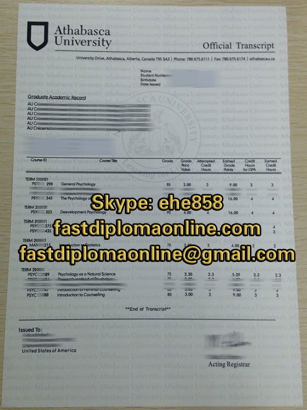 How to replace a athabasca university official transcript? buy fake athabasca university transcripts. At present, Chinese students are mostly concentrated in business and computer science in the professional selection. These majors are popular in China or North America. In the 1980s and 1990s, I went to Canada to study. These two major classmates have developed very well in China or North America today.